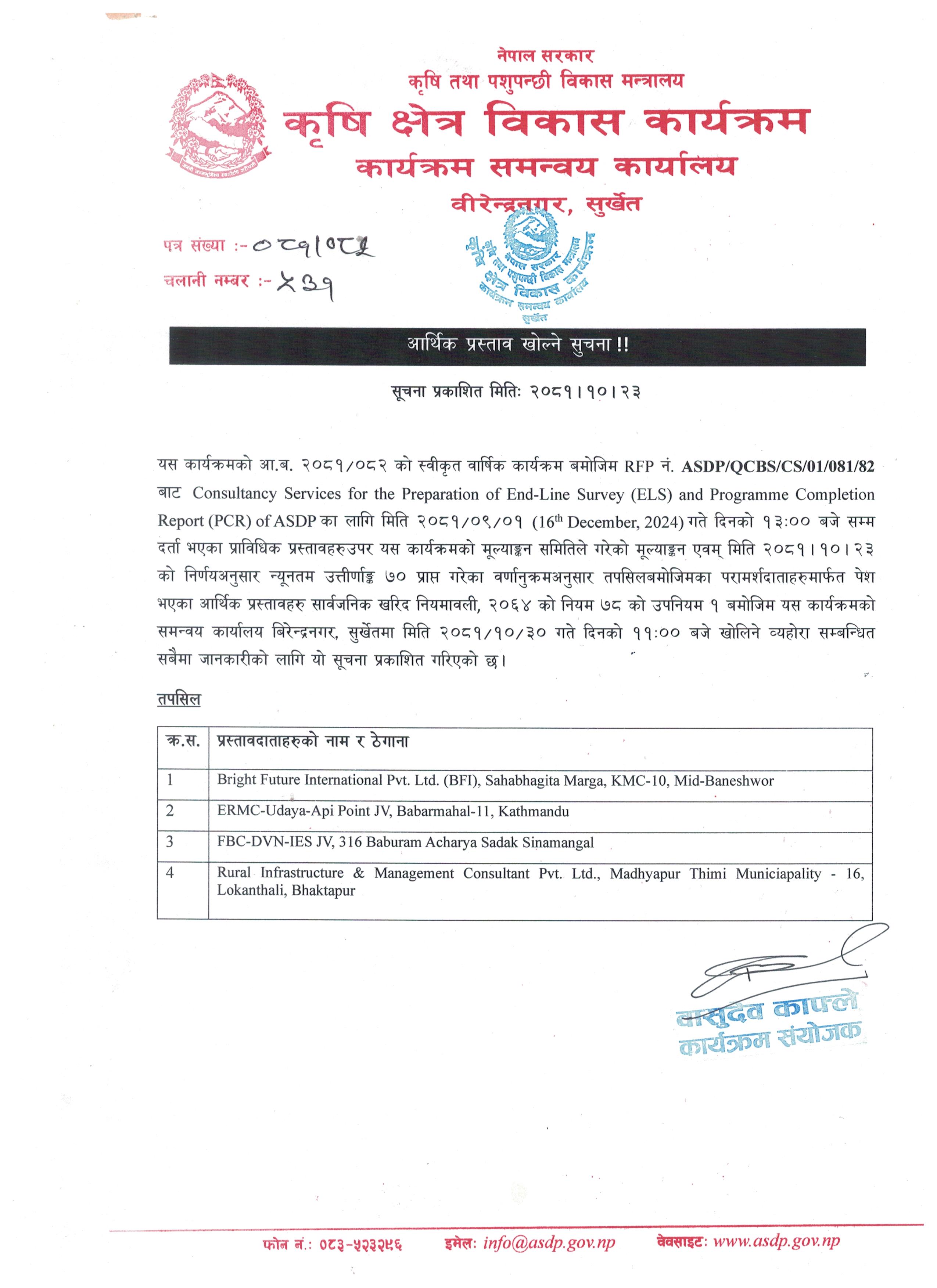 आर्थिक प्रस्ताव खोल्ने सुचना